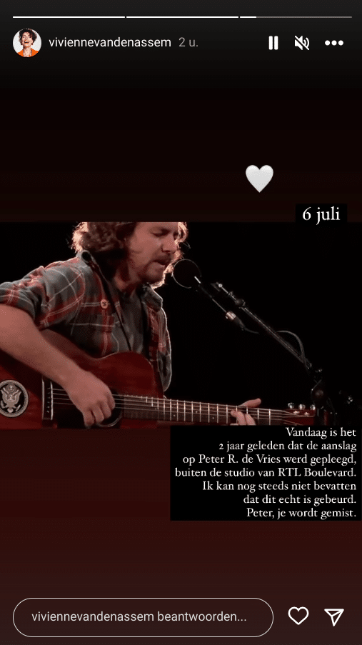 “Vandaag is het 2 jaar geleden dat de aanslag op Peter R. de Vries werd gepleegd, buiten de studio van RTL Boulevard”, schrijft Van den Assem in een bericht op Instagram. “Ik kan nog steeds niet bevatten dat dit echt is gebeurd. Peter, je wordt gemist.” Maasland plaatst een foto van de overleden misdaadjournalist. “We missen je”, schrijft zij daarbij.