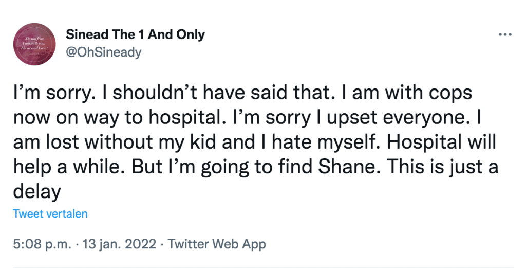 De zangeres plaatste donderdag een aantal heftige tweets waarin ze onder andere zei dat ze het gevoel heeft dat de dood van Shane haar schuld is. ‘Het ziekenhuis zal een tijdje helpen. Maar ik ga Shane vinden. Dit is slechts een vertraging’, dreigde ze.