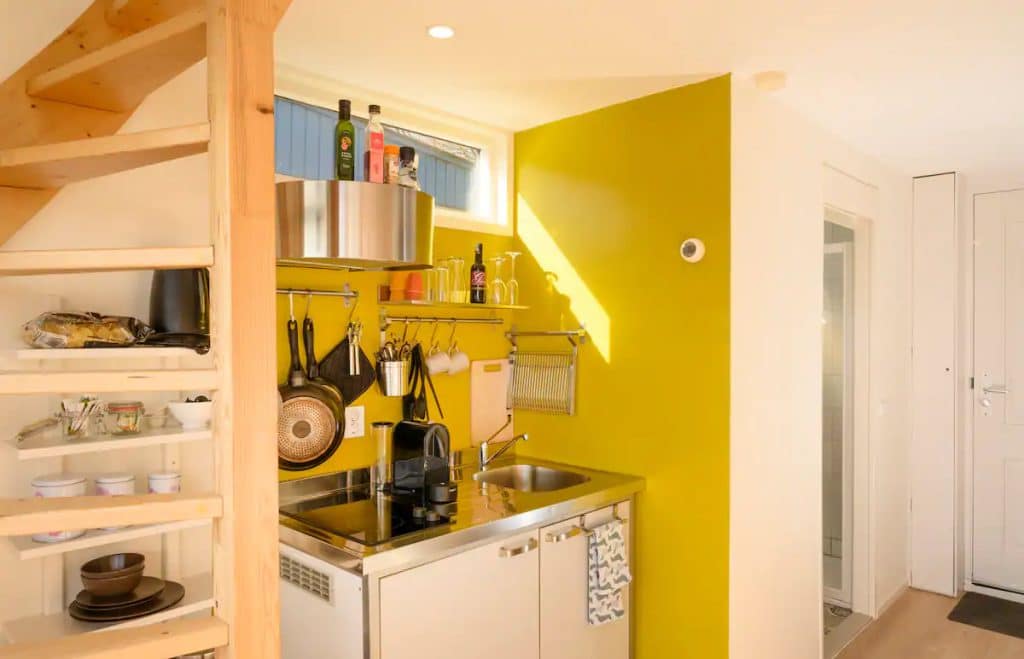 Gasten kunnen tijdens hun verblijf gewoon aankloppen bij de musical-actrice, die met haar gezin in de andere helft woont. Sterker nog, Lone deelt het terras met uitzicht en de trap in het water om te zwemmen ook met haar gasten, maar in de advertentie belooft zij hun privacy te respecteren. De studio heeft een bed van 1.60 m breed, een eenvoudige keuken met tweepitskookplaat en koelkast en een badkamer met regendouche. Lone zorgt voor beddengoed en handdoeken en de gasten kunnen gratis gebruikmaken van haar fietsen.