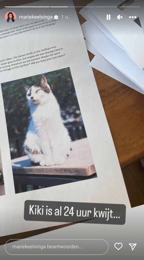 Marieke Elsinga heeft er een nare 24 uur op zitten. Haar poes Kiki, in eigen land inmiddels wereldberoemd, was sinds donderdag spoorloos, meldde de presentatrice bezorgd op social media. Maar het verhaal kreeg een blij staartje.