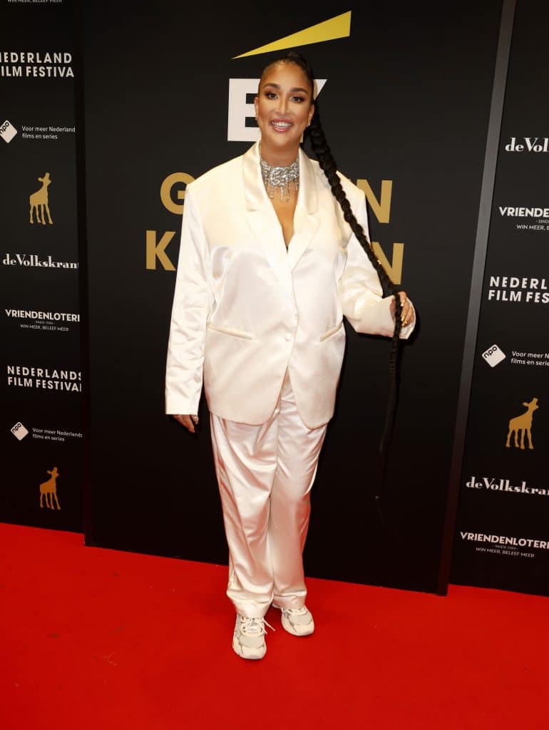Dat Imanuelle van flink uitpakken houdt, is niets nieuws. Een avond als deze is voor haar dus dubbel feest. Ze maakte van zichzelf de parel van de avond met een galajurk bezaaid met pailletten en diamanten.