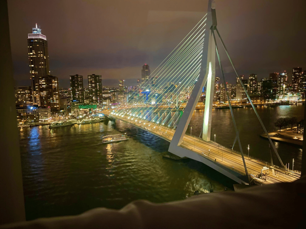 Het nhow Rotterdam hotel zou ook nwow kunnen heten, vanwege het spectaculaire uitzicht op de Rotterdamse skyline en de Erasmusbrug, die ’s avonds práchtig is verlicht. Een zeer gastvriendelijke plek in een romantische ambiance, om even te onthaasten. Het voortreffelijke uitgebreide ontbijt (op bed) zal daaraan bijdragen. De sfeervolle en drukbezochte Gastrobar Elvy, op de zevende etage met dakterras, biedt heerlijke gerechten en cocktails. Verder heeft het een hotel een eigen sauna, met eveneens dat geweldige uitzicht. Kortom: genieten geblazen! nhow-hotels.com