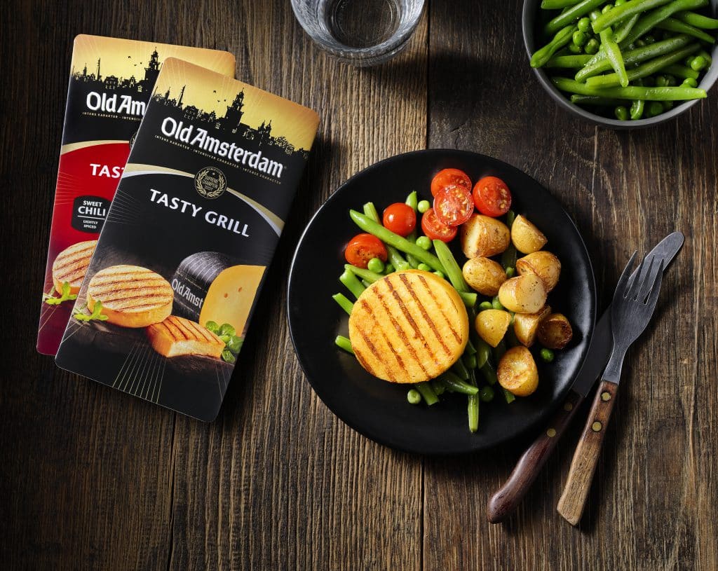 De Tasty Grill Original en de Sweet Chili van Old Amsterdam zijn een must voor echte kaasliefhebbers. De kaasburgers zijn gemakkelijk en snel te bereiden in de grillpan, koekenpan of op de bbq en na bereiding hebben ze een smeuïge binnenkant en een lekker krokant randje. Dat is pas een lekkere vleesvervanger! Verkrijgbaar bij onder meer Albert Heijn, Jumbo en Plus voor €3,99.