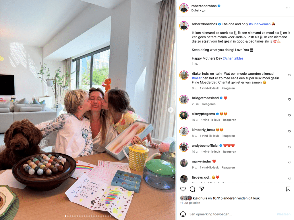 Het is Moederdag! Verschillende bekende Nederlanders hebben daarom een eerbetoon aan hun (schoon)moeder, vrouw of kind(eren) gepost. Kijk en geniet mee.