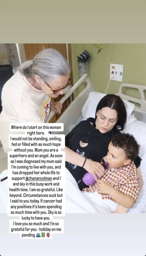 “Mam, jij bent een superheld en een engel”, schrijft Jessie op haar social media. “Zodra ik de diagnose kreeg, zei mijn moeder: Ik kom bij je wonen. En ze heeft haar hele leven op pauze gezet om Chanan, Sky en mij te ondersteunen in deze drukke periode”, gaat ze verder. De zangeres is hier ontzettend dankbaar voor. “Meer dan woorden kunnen uitdrukken.”